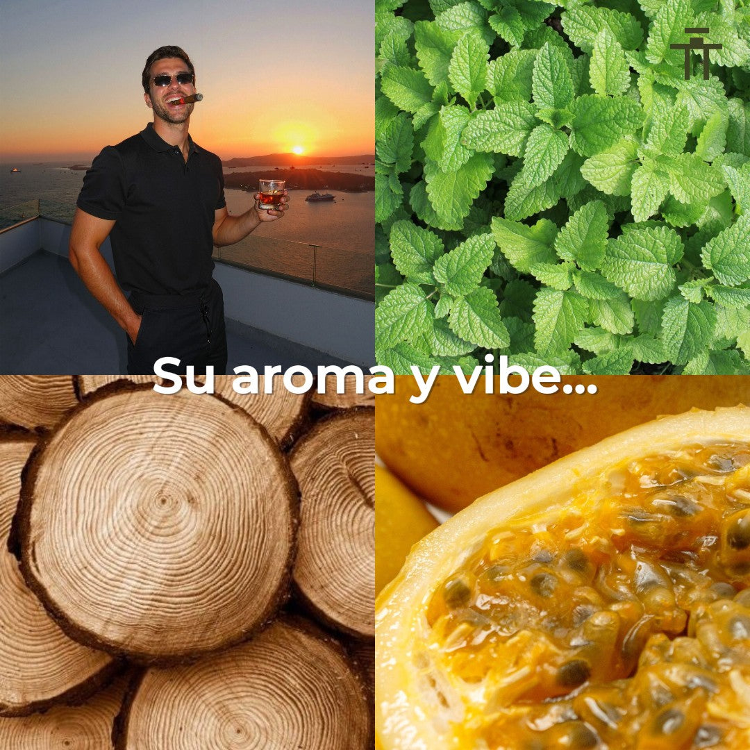 Sus exóticas notas de salida son Jengibre, lima-limón, pimienta y maracuyá, en sus notas de corazón podrás sentir lo más cálido de la menta, y para darle cuerpo a este aroma se fusionan las notas de base que son cuero, madera y ámbar.