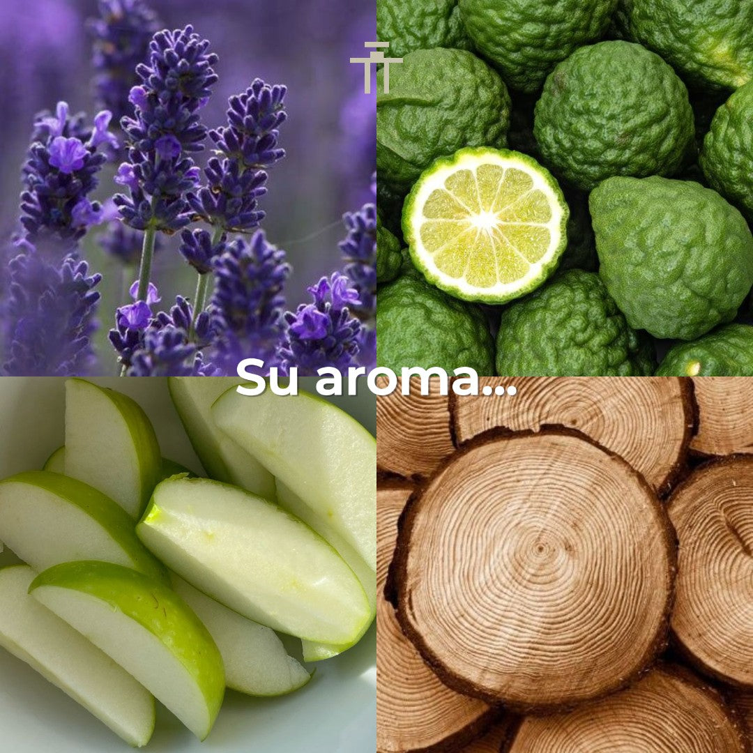 Notas principales: Su impactante aroma es refrescante, limpio, cítrico, aromático con acordes de madera y manzana verde.