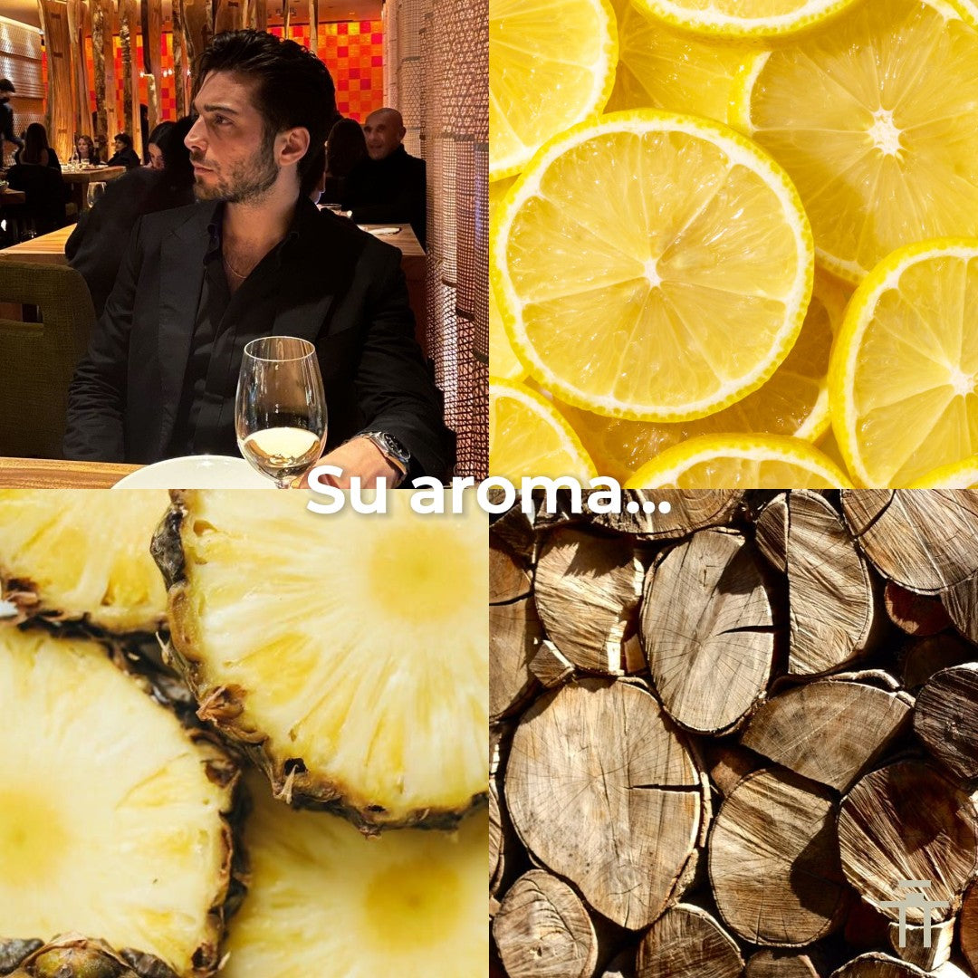 En sus notas de salida sentirás una exquisita piña y toronja, en sus notas de corazón podrás sentir como te envuelve el cedro y el jazmín; Y en su fondo encontrarás lo más fino de las notas de roble y ámbar.