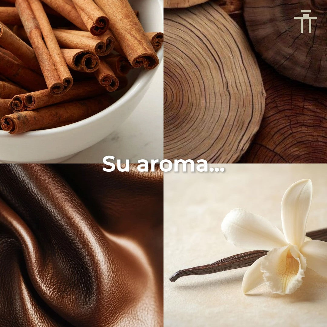 Notas Principales: Su aroma es dulce, amaderado, avainillado con unos perfectos toques de cedro, cuero y pimienta