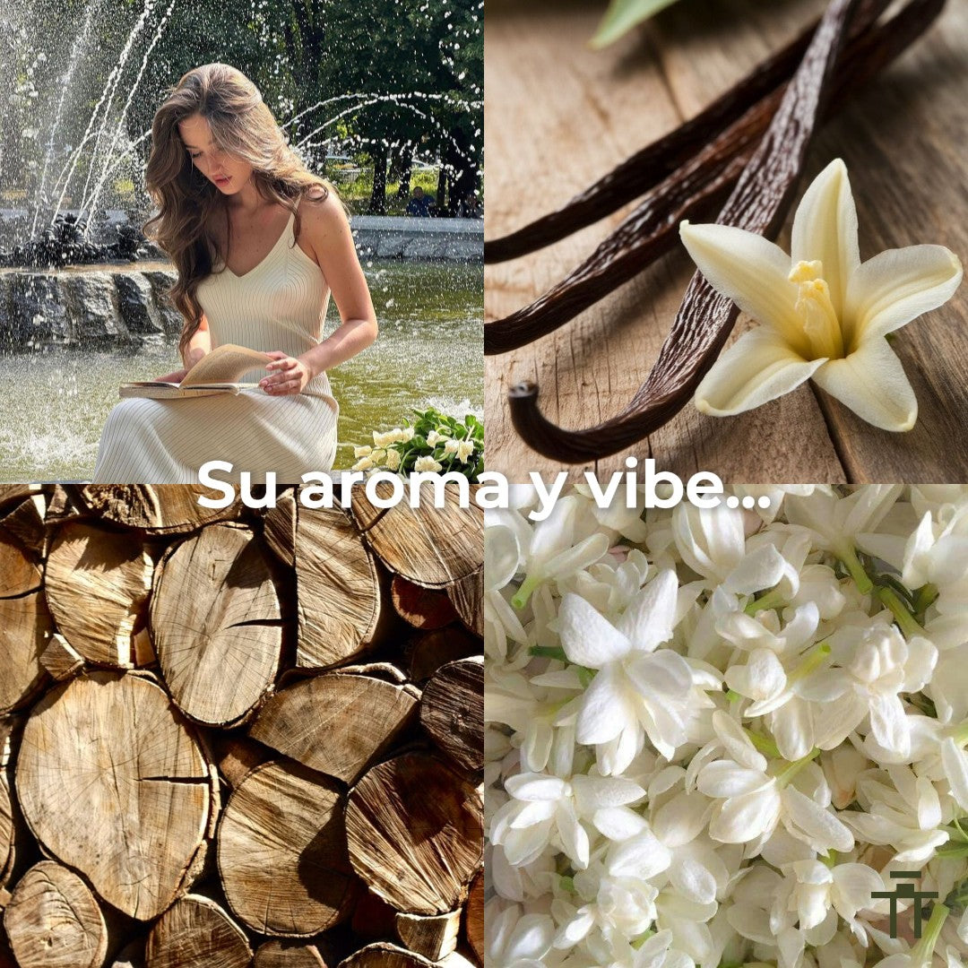 Inicia con notas de flores y jazmín se fusionan con vainilla cálida y maderas intensas para crear un aroma totalmente equilibrado