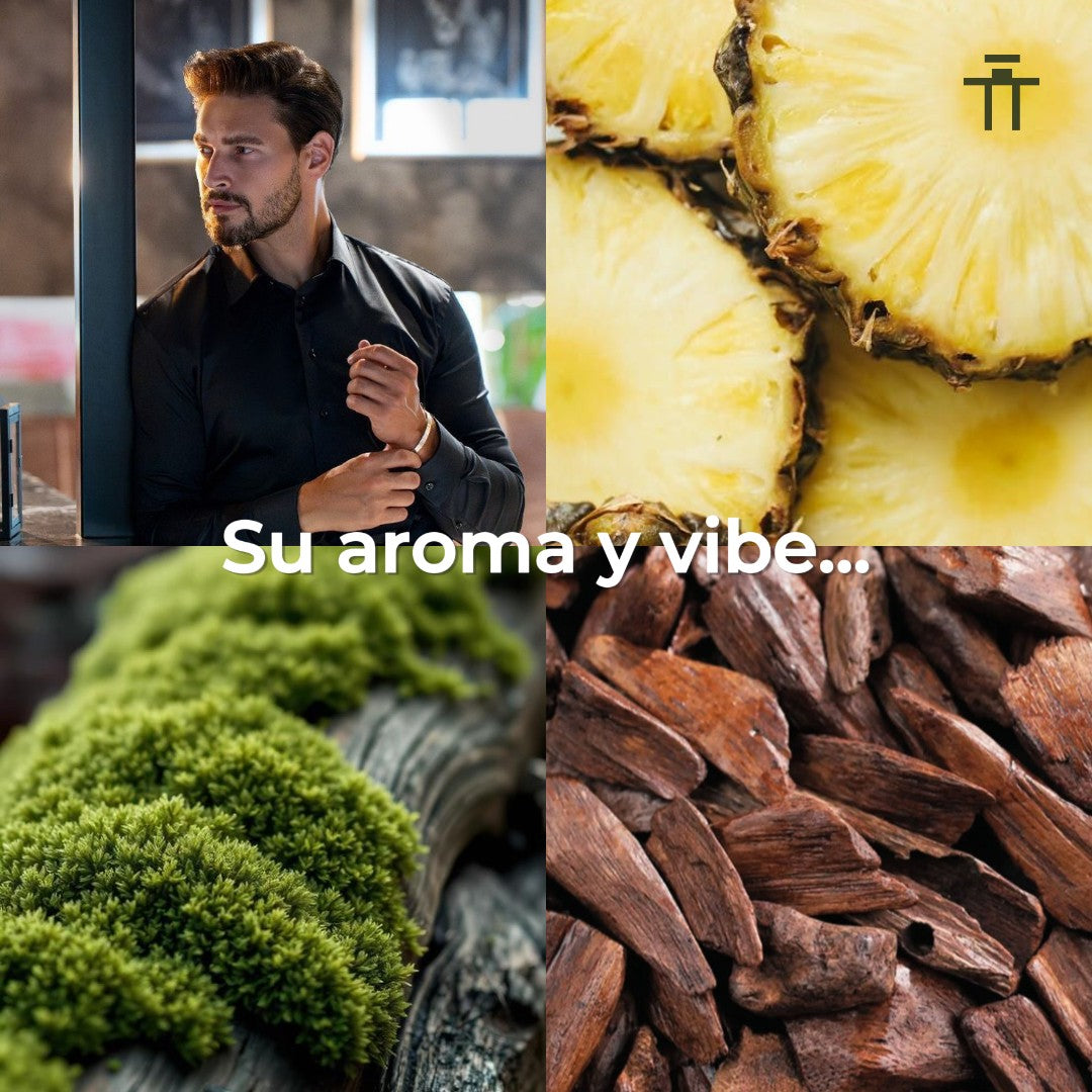 Desde la salida se percibe fresca y vibrante, con un fondo cálido y amaderado que le aporta carácter y profundidad. La lavanda le da un aire limpio, mientras que la piña y el musgo lo hacen diferente, adictivo y elegante.